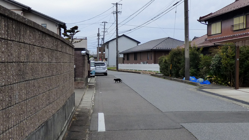 旧街道を歩くにあたって、贅沢は言いませんが、これくらいの交通量が、いいかな。「ねこ、一匹ね…。」