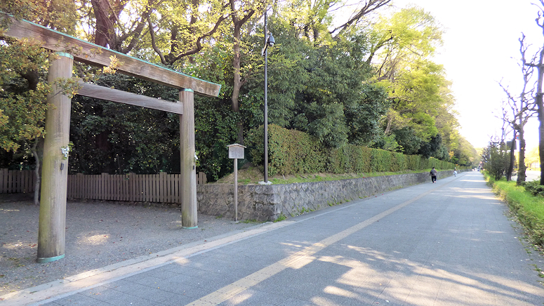 「さすがわ鎌倉幕府を開いた将軍、頼朝公の生地。奥行きがあり、手前に低い生垣があってって…、これ、熱田神宮横の、10車線の道路の、中央分離帯じゃないの?」その通り。「道路を渡るのが、面倒なので、道路越しに撮影した?」まったくもって、いちいち、その通り。m(_ _)m。