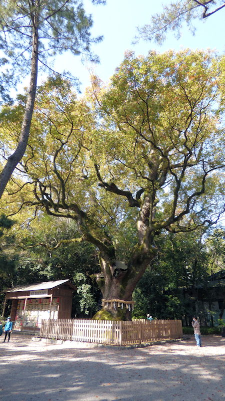 「よく、見つけたと思ったら…、そう言うこと。」そう。単独の巨木なら、遠くからでも目を引くと思うけど、熱田神宮の境内の中にあっては、さすがの御神木も、目立たないからね。「ホント、大きな杜だね。」