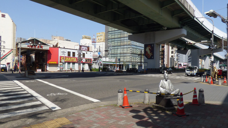 円頓寺商店街・円頓寺本町商店街の像。正面は、秀吉さん、右に渡った角に信長さん、交差点の対角線向こう側に家康さん、左の横断歩道渡ったとこにご老公。全員入ったけど、ちょっとわかりにくいね。m(_ _)m。