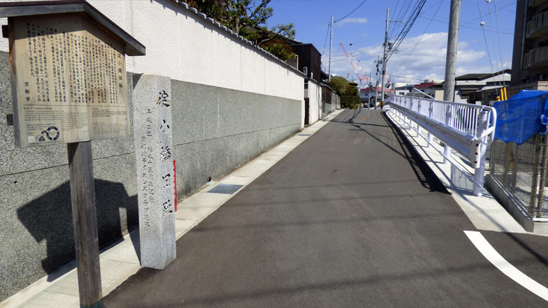 淀小橋跡の碑と案内板。来た道を振り返ったところ。