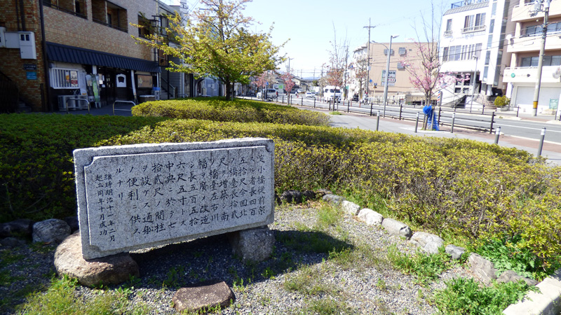 淀駅前にある淀小橋増築碑。