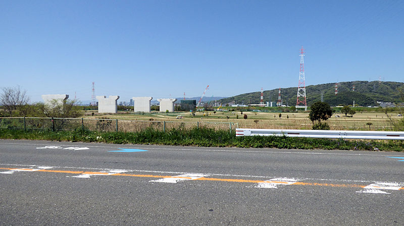「何?それ?見た目では、淀川を跨ごうとしているけど??」新名神高速道路…かな。「あ〜、高速道路ね。両岸じゃなくて、遠くと遠くを結ぶってことね。」