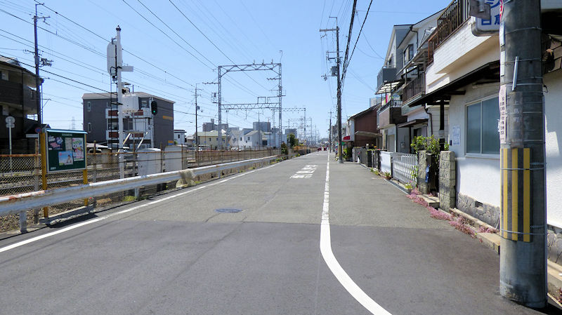 「あまり、見た目の変化のない土手の道は厳しかったけど…。「この線路沿いの道も、変化なさそうだね。」まっすぐだよね。「変わった電車でも、通らないかな?」笑。