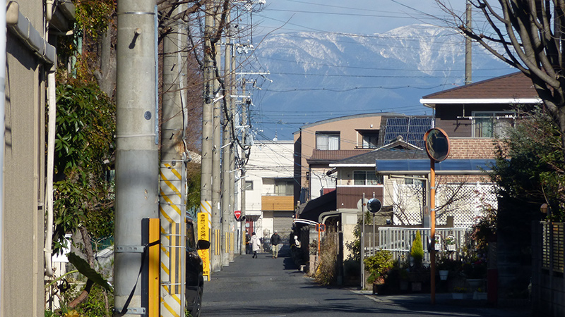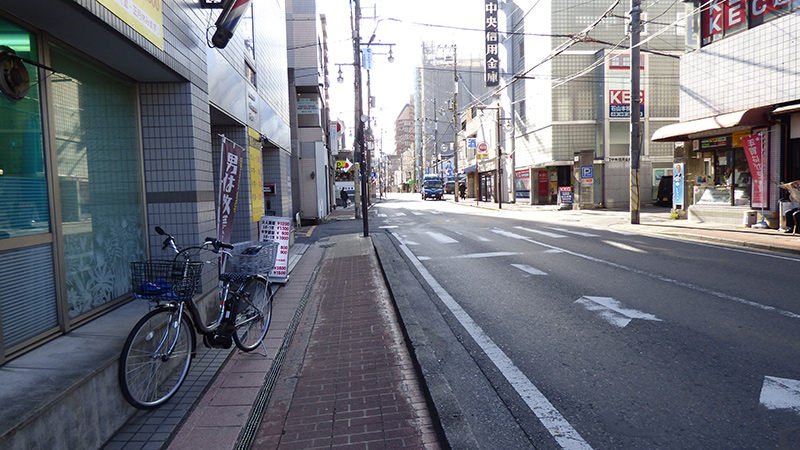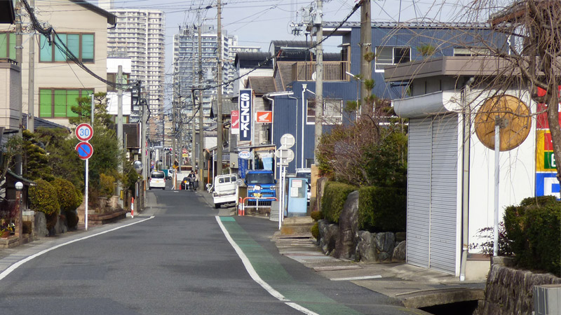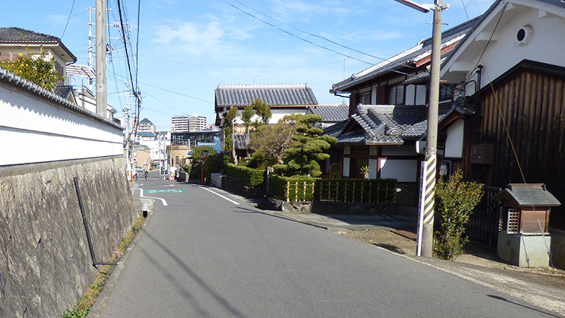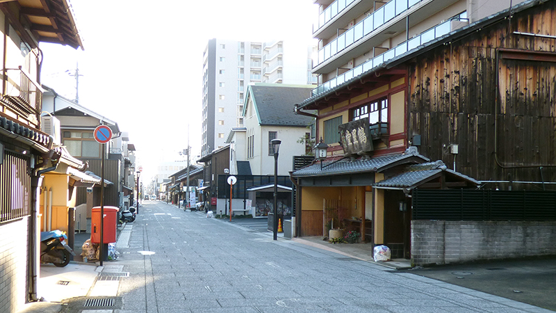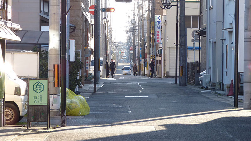 膳所神社の前。鳥居を前にして、右を向いた景色が写真。