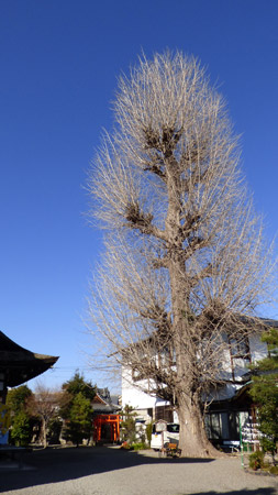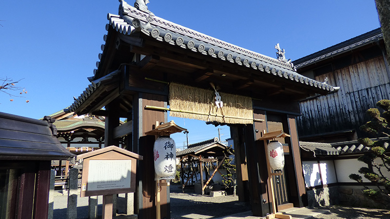 和田神社。関ヶ原の戦いに敗れた石田三成が、京都へ護送される休憩の際、この木につながれたとか。