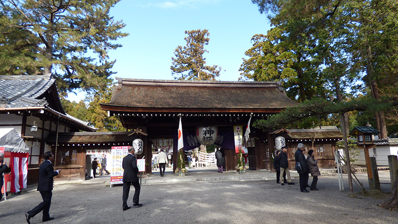 膳所神社。移築された膳所城本丸表門。まあ、城を体をはって守るよりも、初詣の笑顔の家族連れを迎える方が、門にとっても、いいでしょうね。
