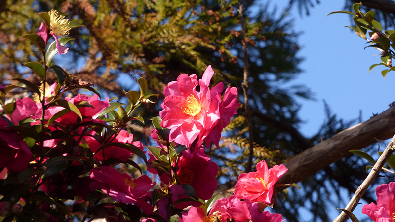 山茶花の ピンクに染まる 参道を