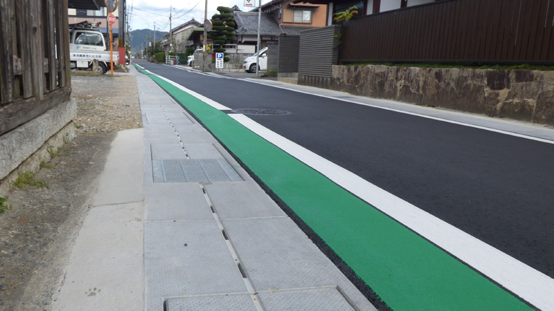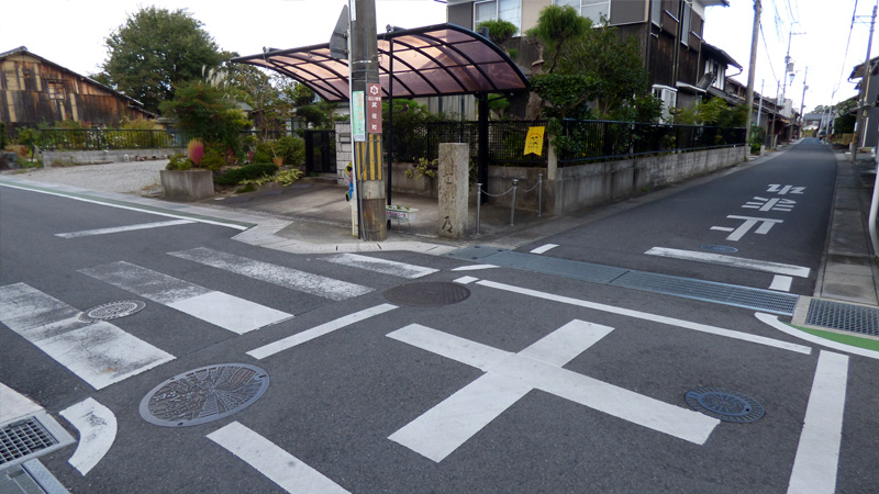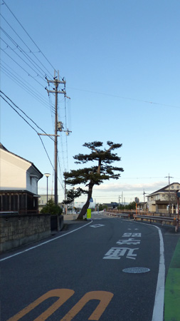 いいね。このカーブと、松。道の脇から、ぐいっとせり出しているのかと思いきや、松の周りは舗装されていて、道の中央よりに生えているんだね。仕方ないので、松から左はすべて歩道にしちゃった、と言うような感じだね。