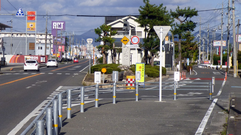 中山道と八風街道との交差点。写真は交差点から伊勢方向を見たもの。