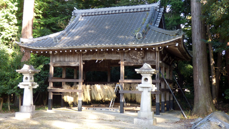 ここの神社には、”まじゃらこ"って言う行事があるそうな。年のはじめに勧進縄を張り、中央に木札を備える。その木札めがけて子供たちが小石を投げて、木札が割れるといいそうな。厄払い、願い事成就だね。
