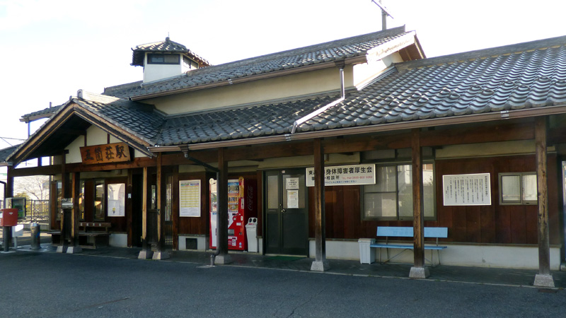 駅の南端の上を、東海道新幹線が通っているね。でも、その下の五個荘駅は、無人駅。一日の乗降客数は、2016年で80人となっているね。