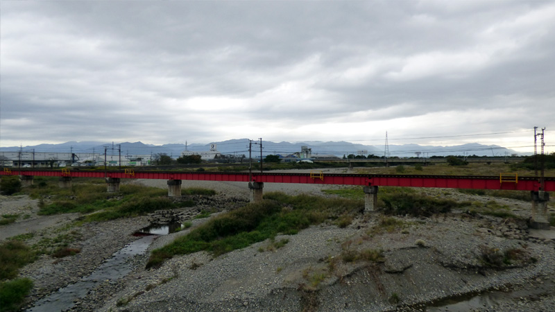 愛知川にかかる、近江鉄道愛知川橋梁。239メートルの鋼製九連桁および単トラス桁橋で、登録有形文化財。1898年建設。