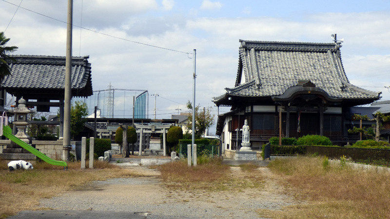 鎌倉時代建立の四脚門があるというので訪れたんだけど、修復中で全体が足場で囲われていて、見えませんでした。