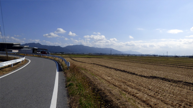 愛知川宿で、宿場を抜けたら、真正面に伊吹山が見えるというので、期待していたんですけど、よくよく見ると、いつの間にやら見えてますね。伊吹山ですよね。 「でかいね。」