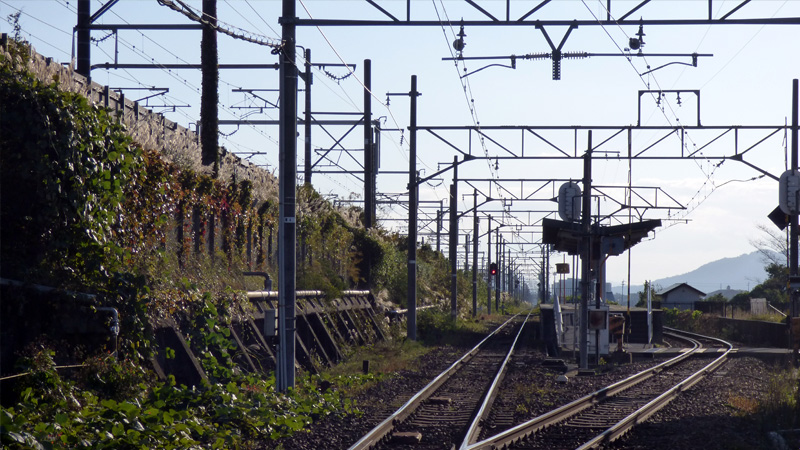 近江鉄道の尼子駅。もちろん、無人駅。左は東海道新幹線。
