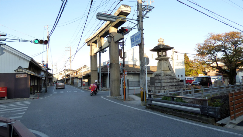 みちばたに 多賀の鳥井の 寒さ哉 (江左尚白)