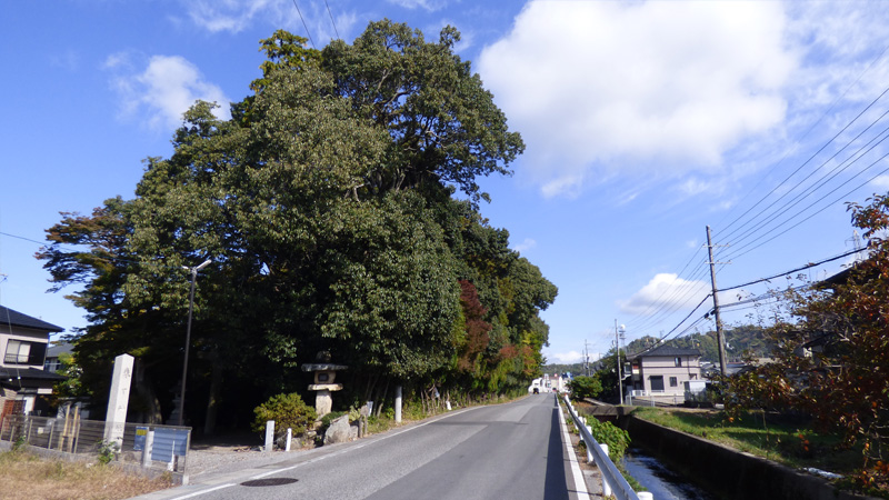 すごい杜だね。樹の高さ、街道にあふれんばかりの勢い、そして、この長さ。街道と平行に杜の中に参道があって、一番奥の本殿の横に、街道から入る道があったら、どうしようかと。「なにを、くだらないことで悩んでいるんだか。」