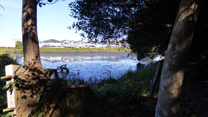 参道から、街道と反対がに開けていた空間を覗いた景色が、写真。「また、別世界だね。」 鴨さん、いっぱい。さらに、その向こうは、住宅地だしね。