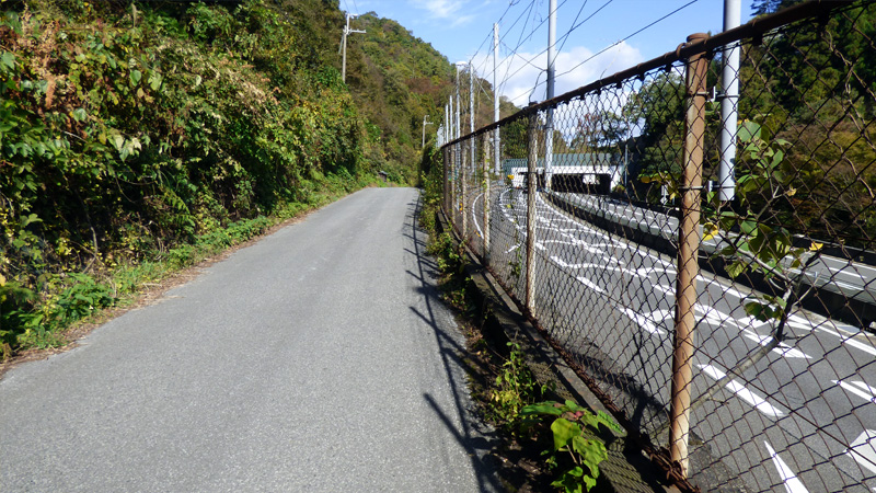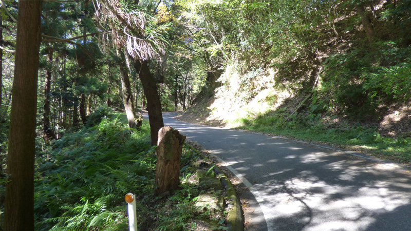 峠に入ったところ。いいね~。スキッとしているね。それに、なんと言っても、先ほどまでの車の騒音じゃなくて、虫の声が響いている。道もなだらかだし。「まだ山道じゃないね。」