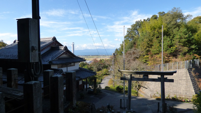摺針峠のてっぺんにある神明宮から琵琶湖を望む。