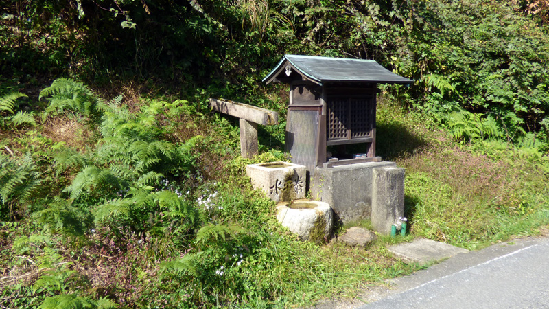 泰平水。小摺針峠の頂上手前にある湧き水。
