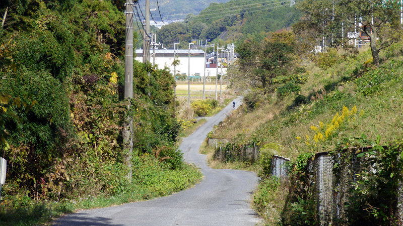 向こうから来るのは、自転車だね。「こっちは、下り、向こうは、上りだから、ごくろうさま、って感じだね。」
