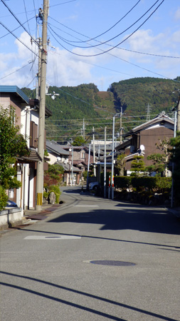 その麓のあたりが、琵琶湖へ抜ける道との分岐点なのかな?