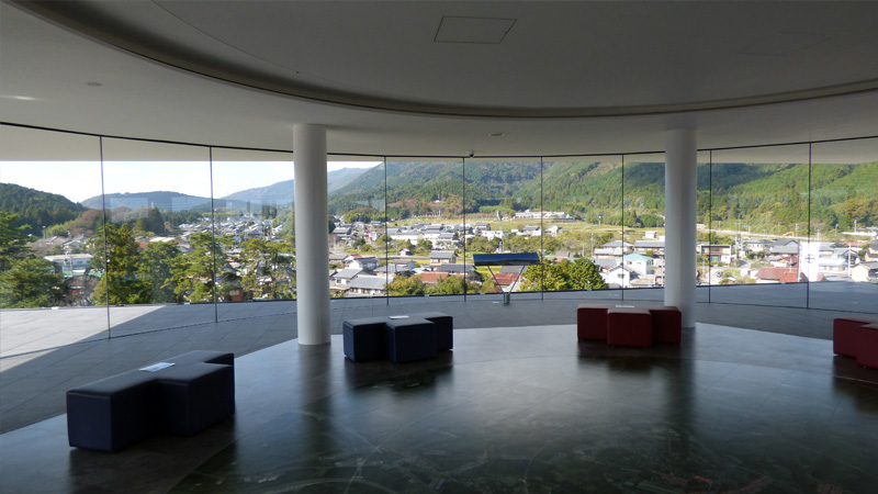 写真中央の少し左に、2段になってる陣は、石田三成と島左近の陣。ここの展望台は、いいね。360度見渡せて、それぞれの方向に写真付で各陣所が示してあるし、フロア中央には関ヶ原全体の航空写真、それを囲むように陣形のソファまで置いてあって、しかも...。「しかも?」 当初、寄るつもりじゃなかったから、ここで随分時間使って、予定遅れて...。「何を言ってるのやら...。」