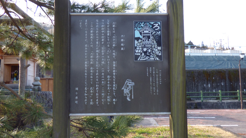 六部地蔵さま。正面が案内板で、左が地蔵様の祠。