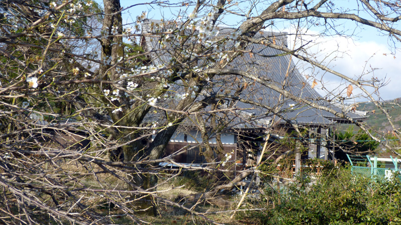 写真は、梅と真念寺の本堂と斑女の観音堂。