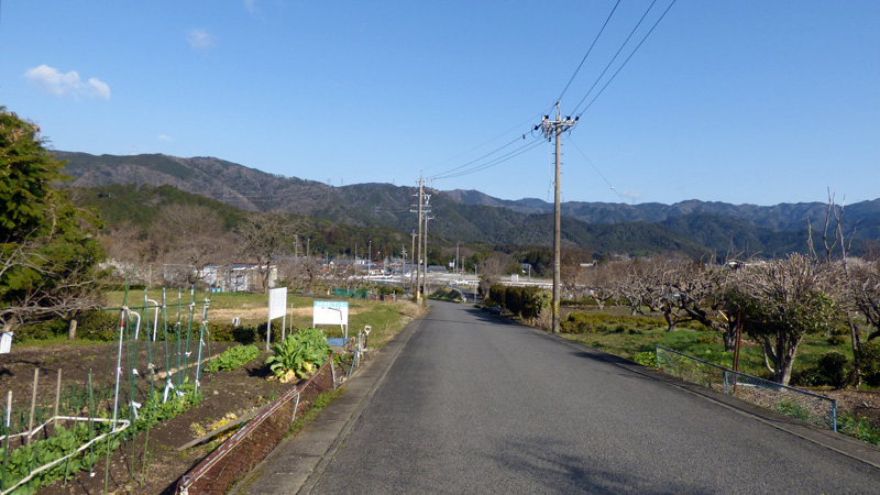 写真中央の国道21号線。ずっと先で、尾根を突っ切っているけど、そこが家康の最初の本陣、桃配山。あの道路で欠けているところの右上のあたりに、本陣の碑があるね。