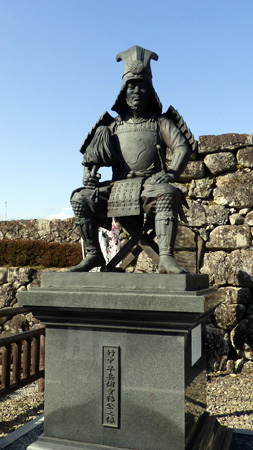 竹中氏陣屋跡楼門前の竹中半兵衛像。