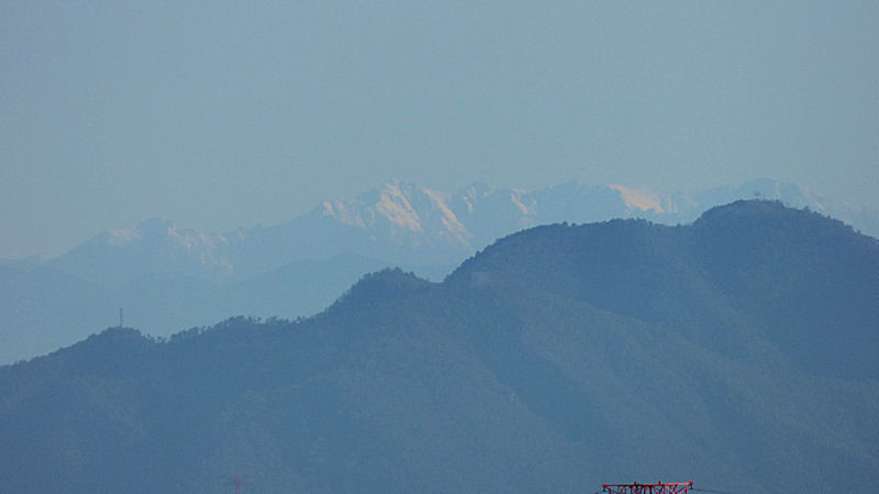 「あそこにも、雪をいただく峰の連なりが見えるね。」 じ〜っと、見てると、だんだん、浮かび上がってくるみたいだね。「連山も、いいね。かっこいいね。…なんて言う山?」