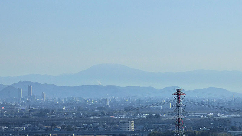 「伊吹山だね。」 背を向けて歩いていたけど、直角に曲がったから、向こうから目に飛び込んできたね。