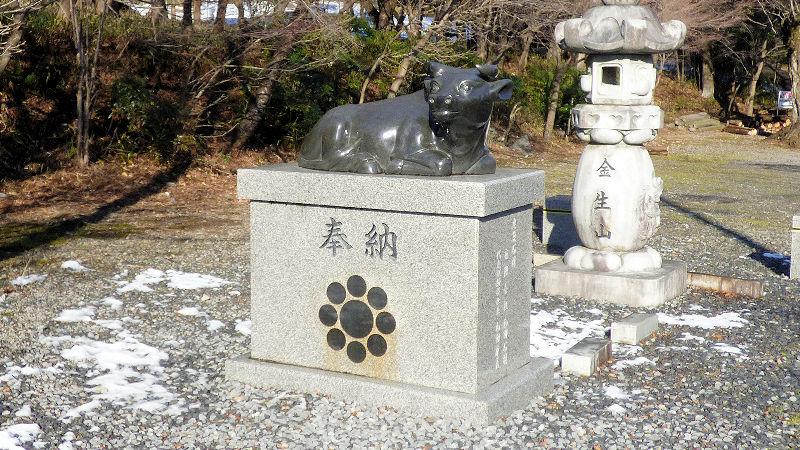この神社の狛犬は、冷泉大納言為恭卿の寄進とあるね。「冷泉家といえば、百人一首の藤原定家さんの子孫の家?」