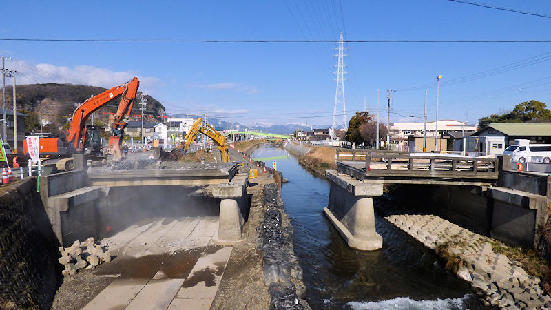 いや〜、遠くに見える、雪をいただいた峰々が印象的だね。「何を言ってるんだか。手前の、壊されてる橋の方が、インパクトあるでしょ!」m(_ _)m。