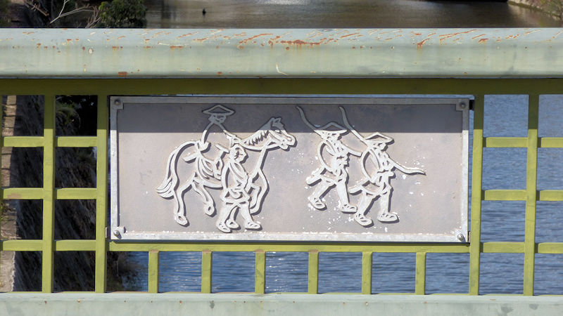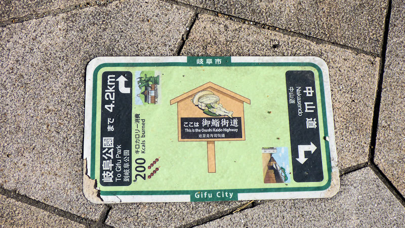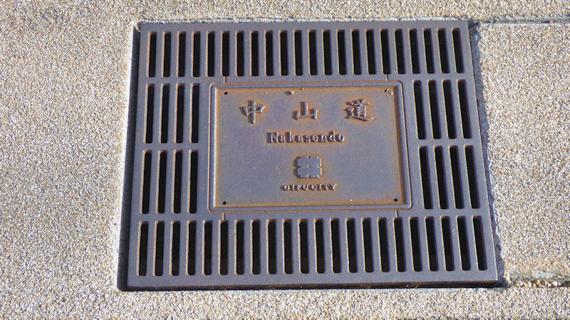 「脚元に、何か、書いてあるけど?」 ん? 溝蓋?…、雨水を流すグレーチング?…って、中山道って、書いてあるよ。いいね。