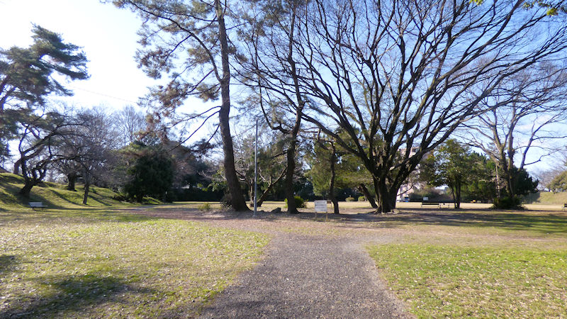 このお城、大雑把に言うと、平城で、外周の車線の無い道路から、内側に二、三十メートルは、公園、そこから大木の並ぶ石垣があり、そのさらに内側に一周三百メートルくらいのトラックが入る空間がある。「建物とかは、何も無し?」 そう。