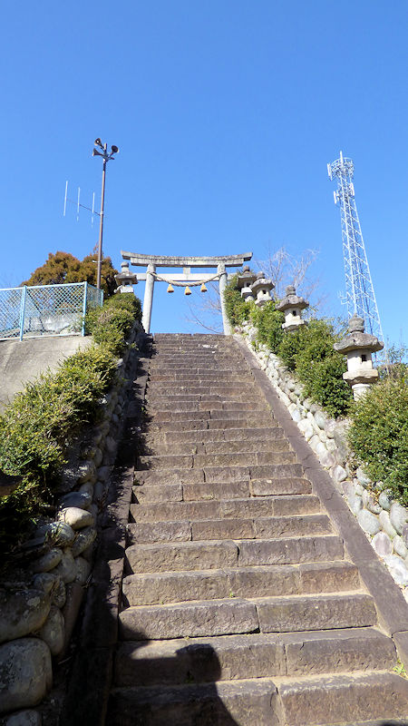 「階段の、段数は、少ないけど、空しか見えないね。ワクワク感を楽しみながら、ゆっくり登ってるの?」いや、脚が、痛いだけ。「おいっ!」
