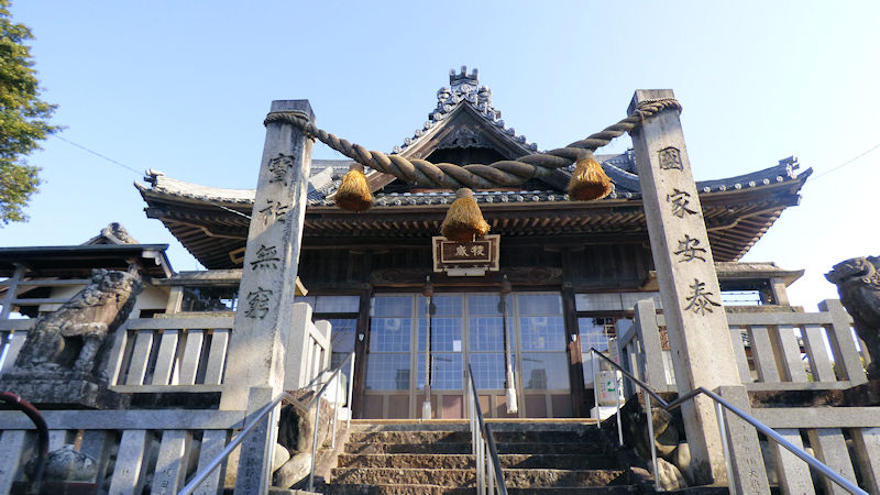 平地部の奥、山裾に、桃太郎神社がある。「すごい名前の神社があるんだね?」驚くことないよ。同じ名前の神社は、全国で六社ほど、あるらしいよ。「そんなに、あるの?」