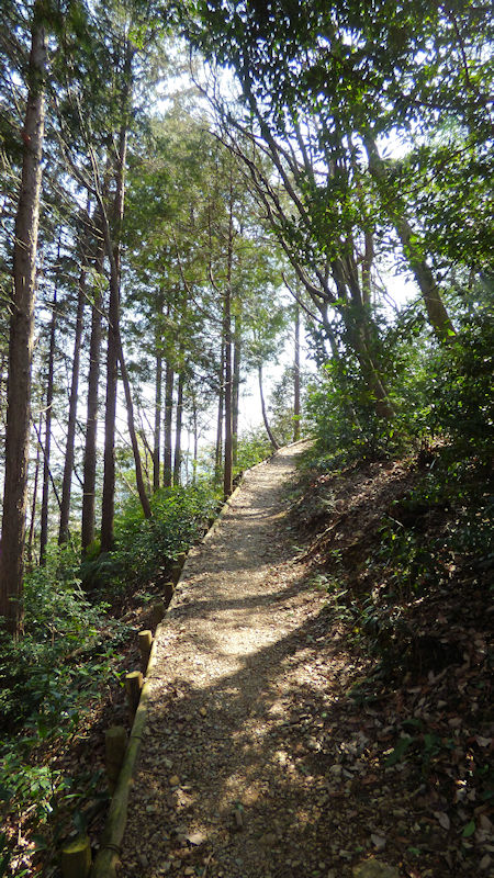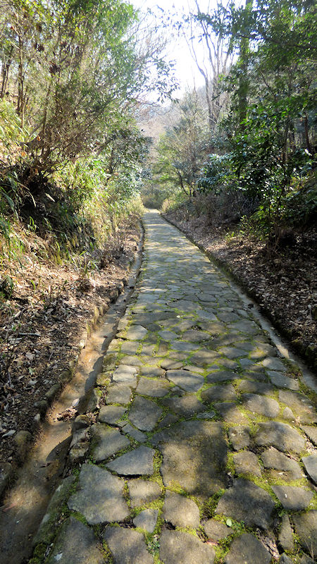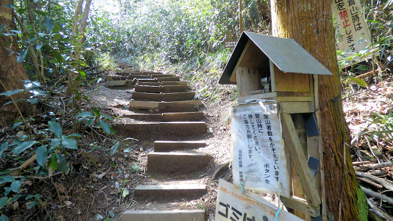 これは、きついね。つづら折りだね。「階段状の山道を、しばらく上ったら、休憩。」 休憩したら、向きを変えて、また階段を上っていく。