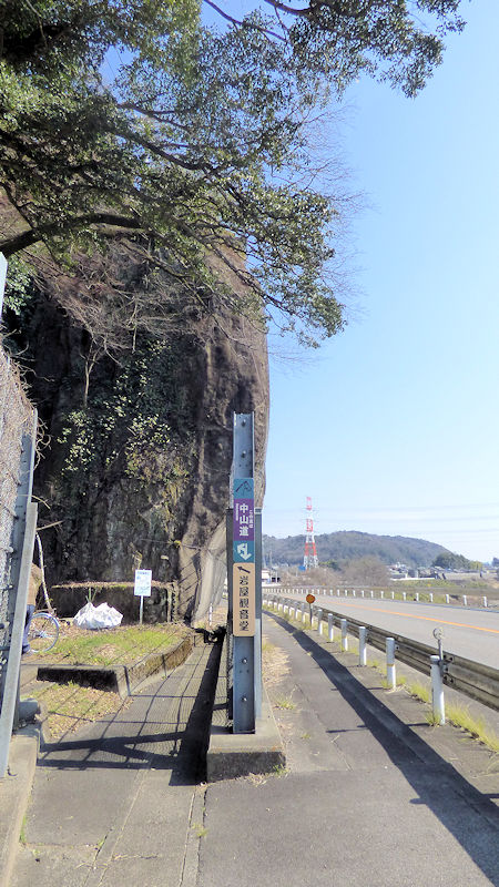 案内板によると、中山道は、尾州領から天領にはいり、すぐまた尾州領に入るとあるね。「その境の石柱だね。西の境界の石柱はあった?」