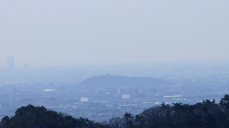 展望台に設置されている、景色のイラストによると…、あれは…、小牧山城…かな?「あの、中央にある、小さい丘?左寄りのてっぺんあたりに、プチって何かついてるようなやつ?」