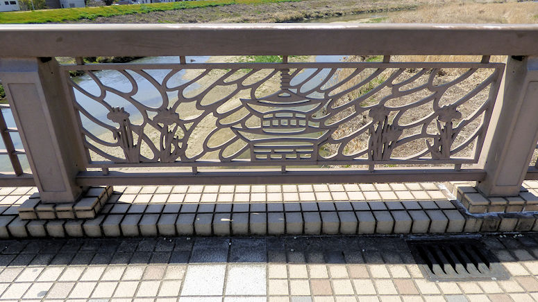 でも、帰ってから欄干の写真を見ると、考えるまでもなく、知立神社の三重塔と杜若園!「すっかり、三河人だね。」
