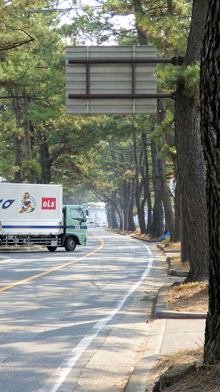 松並木、発見!道路の向こう側に、走っていきたいところだけど、交通量の多い国道1号線なので、無理!…ということで地下道だね。「昔を偲ぶ松並木の手前で、当然当時は存在しなかった地下道ですか…。」まぁ、メリハリついて、いいかも?