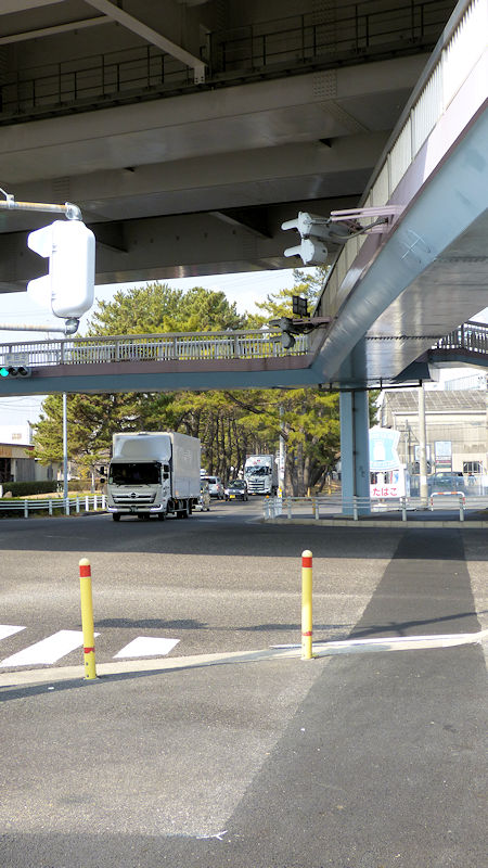 交通量の多さ、大型トラック、交差点を跨ぐ歩道橋、さらにそれの上を行く高速道路。さっき、並木道を歩いていたこと自体が、遠い昔のような気がするね。