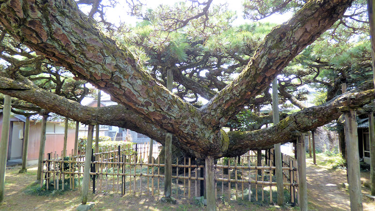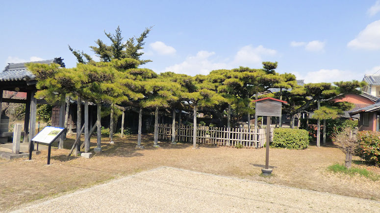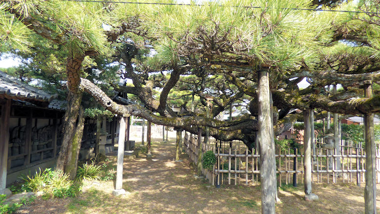村人は、助太夫を祀るためにこの寺を建てたとのこと。この松は、その際に植えられたものか、あるいは、助太夫の屋敷から移されたもので、樹齢は三百年くらい。