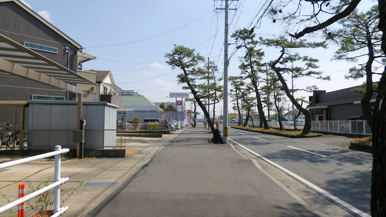 「この先からは、国道1号線と、合流だね。」最後の最後、名残の松並木だね。