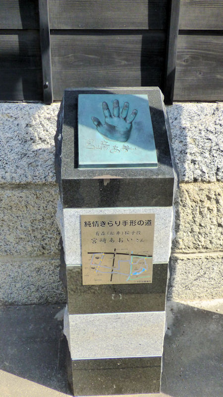 手形があるね…宮崎あおい! 純情きらり! 朝の連ドラだよね。「ここ、聖地? 出演者の手形を取っての聖地巡り? なかなか、考えるね。」